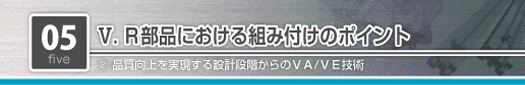 R部品同士の組み付けは隙間が発生し易いため、品質を維持した組み付けには手間がかかっていました。設計段階において部品の幅に差をつけることで、隙間が発生することがなくなり、製品の品質向上につながりました。